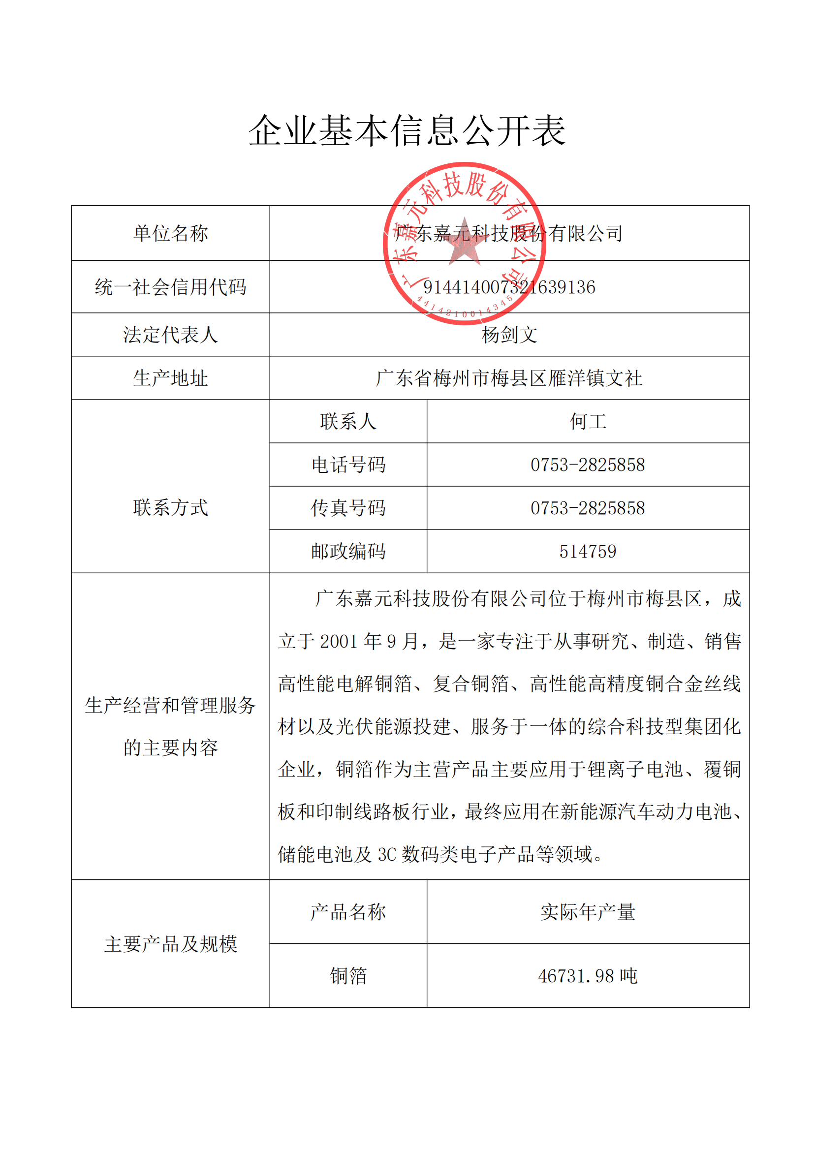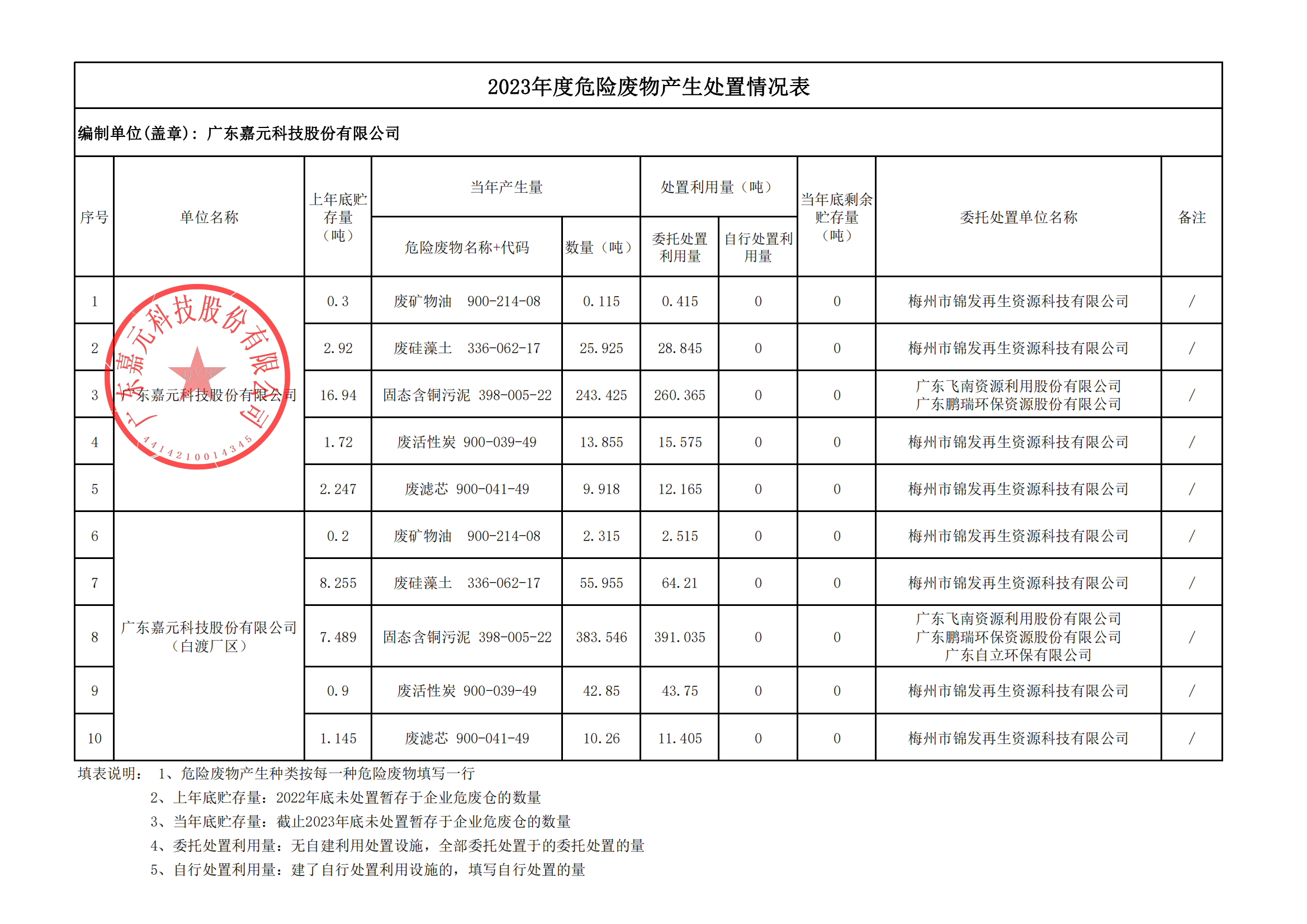 現(xiàn)依法公示廣東嘉元科技股份有限公司固體廢物污染環(huán)境防治信息。